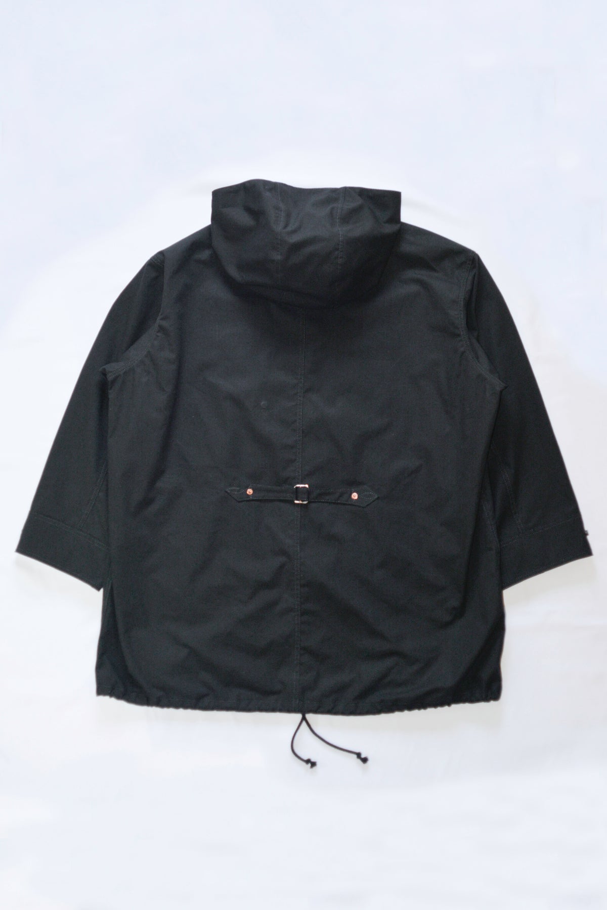 胴部分やフードはゆとりのある作りとなっているので、大きめなシルエットとなっております。