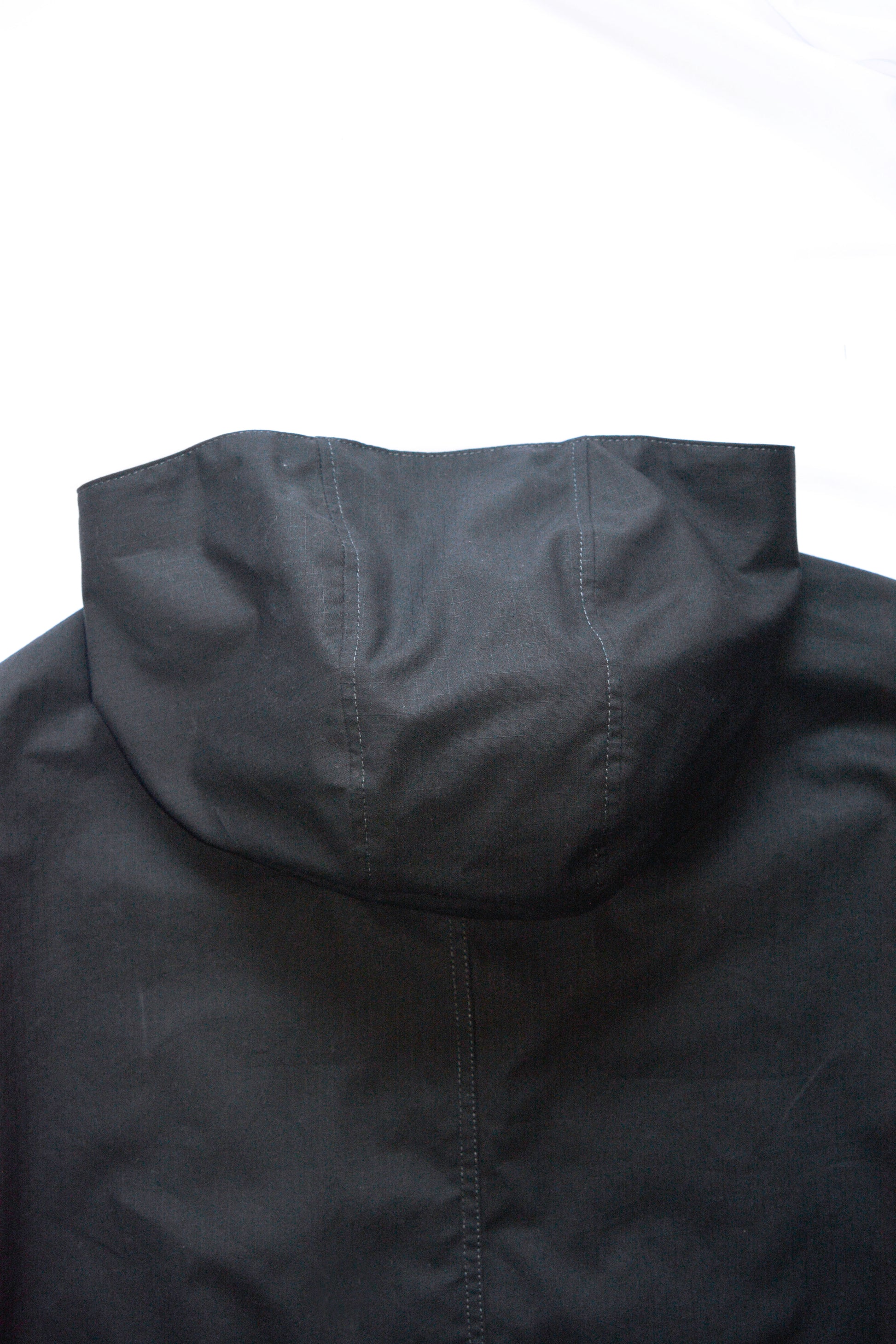 胴部分やフードはゆとりのある作りとなっているので、大きめなシルエットとなっております。