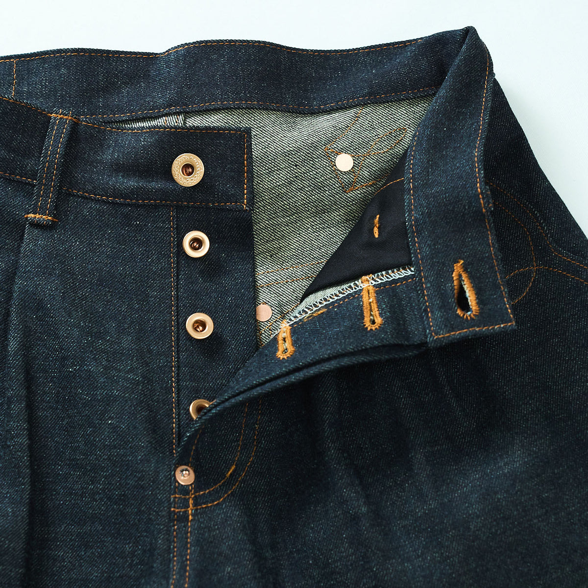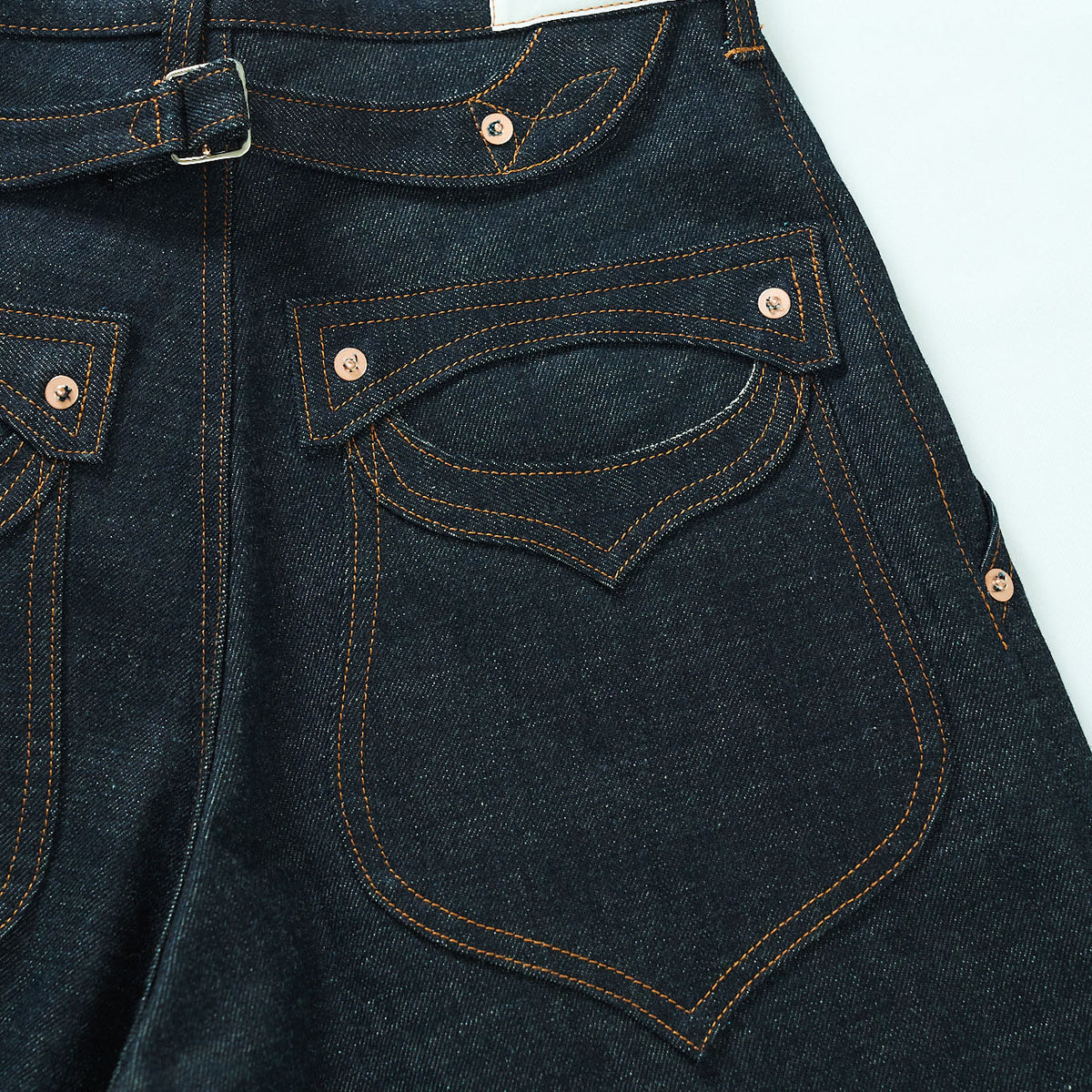 リーフステッチが入ったフロントポケットやシンチバックでアンティークな雰囲気もありつつ、ヴィンテージ色の強い仕上がりとなっています。